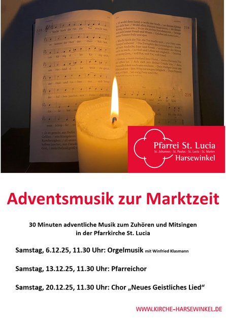 An den Samstagen vor dem 2., 3. und 4. Adventssonntag findet jeweils um 11.30 Uhr in der St. Lucia-Kirche eine 30minütige "Adventsmusik zur Marktzeit" statt.