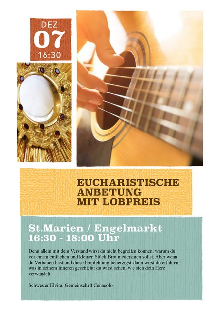 Eucharistische Anbetung mit Lobpreis, Zeit der Stille u.a. am Sonntag, 7. Dezember in Marienfeld