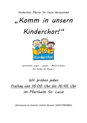 Kinderchor probt wieder - jeden Freitag um 16 Uhr im Pfarrheim St. Lucia Harsewinkel
